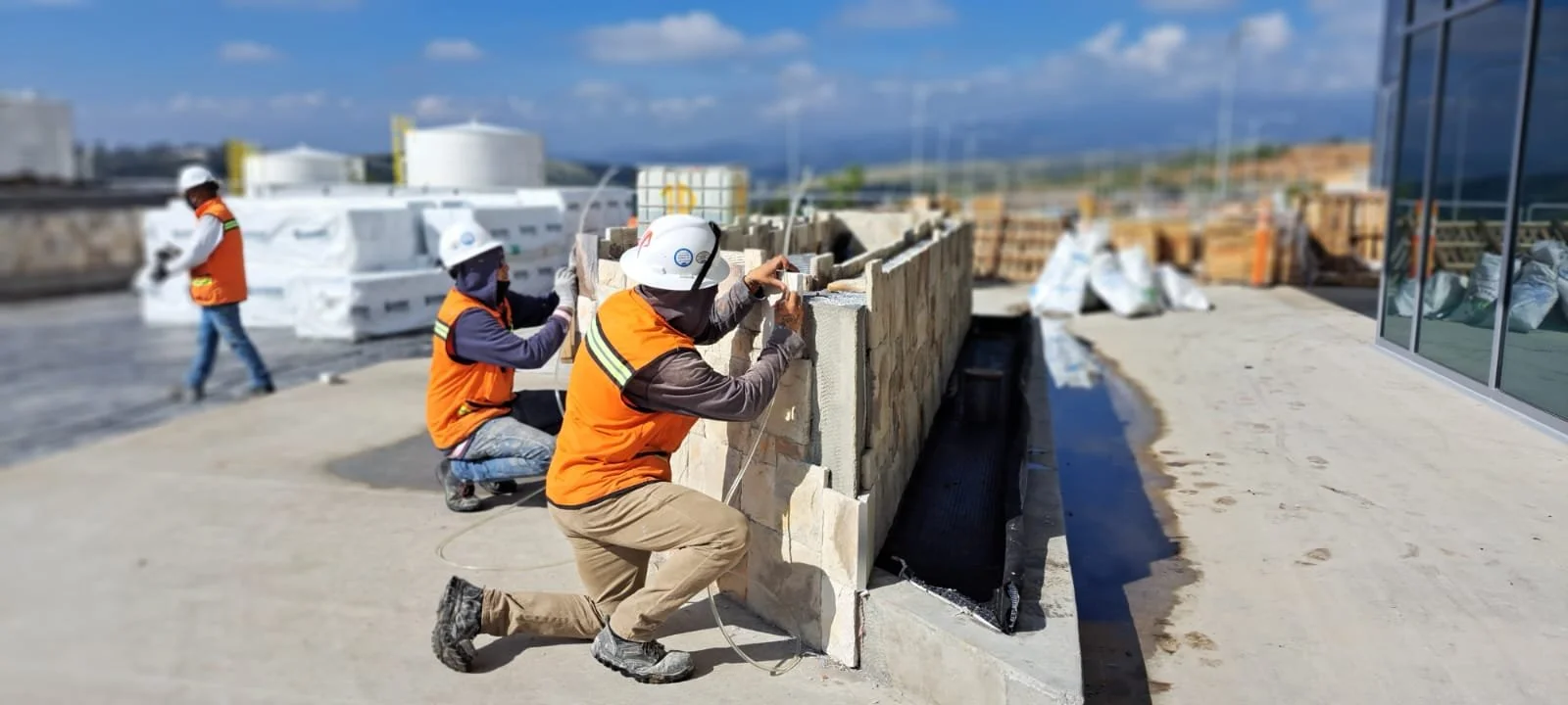 Colocación de acabados pétreos de lujo en torre de departamentos.